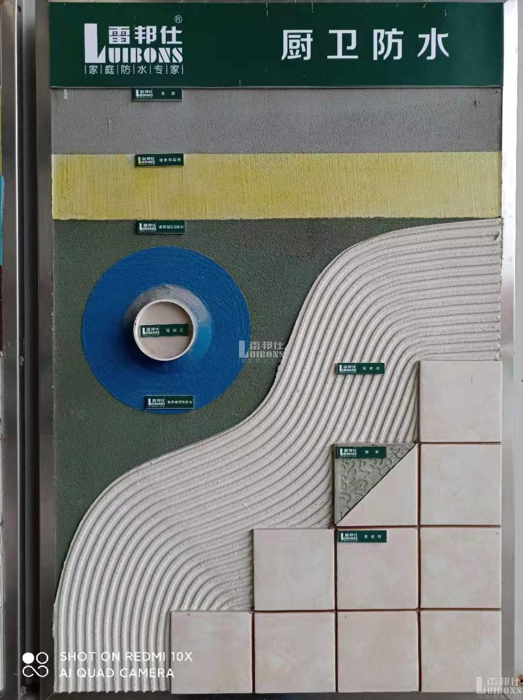 例如雷邦仕通用型防水涂料,是一款剛柔相濟、兼具防水與防潮功能的防水涂料。產品結合了柔性與剛性防水涂料的雙重優點,既具有剛性防水涂料粘結力強,不空鼓、不脫落、貼磚時免拉毛的特點,又具有防水優異的特點;此外,對基層要求低,適應基層能力強,即使基層存在裂縫也能填充,基層較粗糙存在孔隙時也可直接施工。因此,該款防水涂料尤其適用于舊房翻新廚衛間、墻體及地下室部位的背水面防潮處理。
